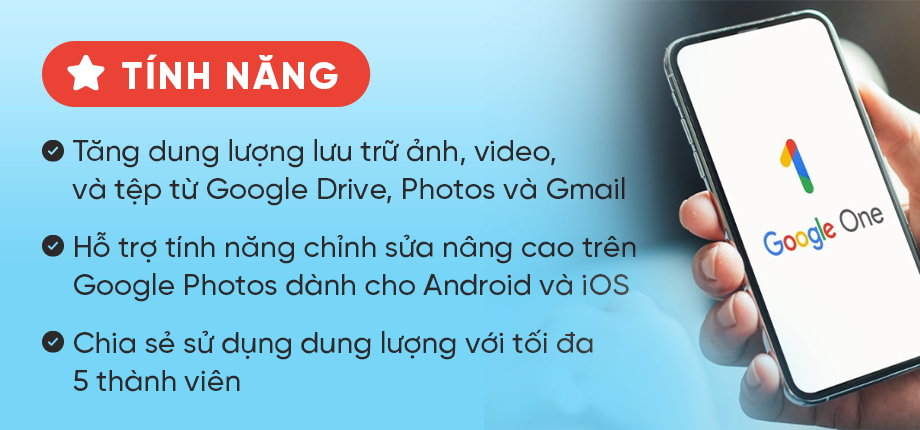 Khi mua gói Google One 2TB tại Huy Plus, bạn sẽ nhận được: